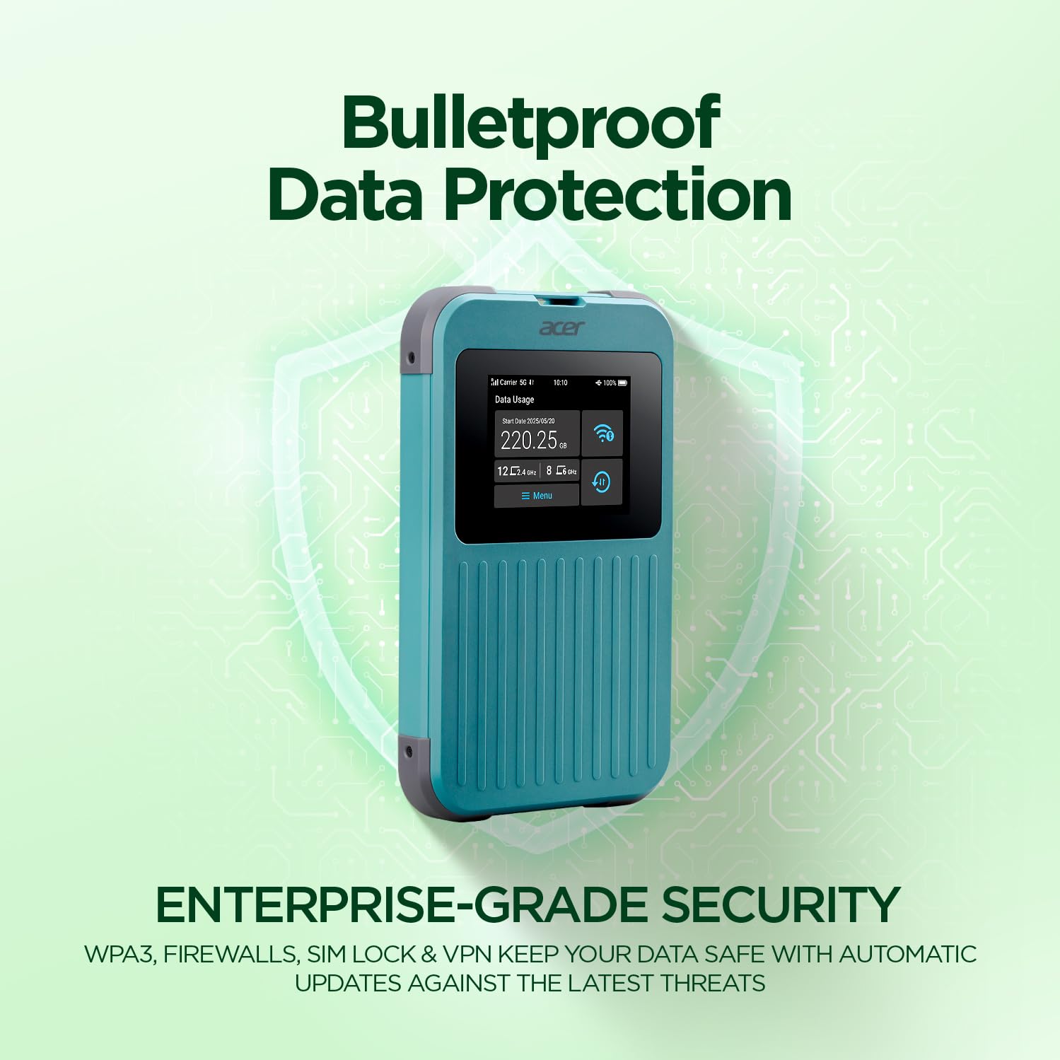 Acer Connect M4 5G Mobile Hotspot | WiFi 6 Dual Band | Connect up to 16 Devices | Access Networks in 135+ Countries I 2.4” Touchscreen | 8000mAh Battery | Tri SIM | Rugged IP68 | USB-C Fast Charging
