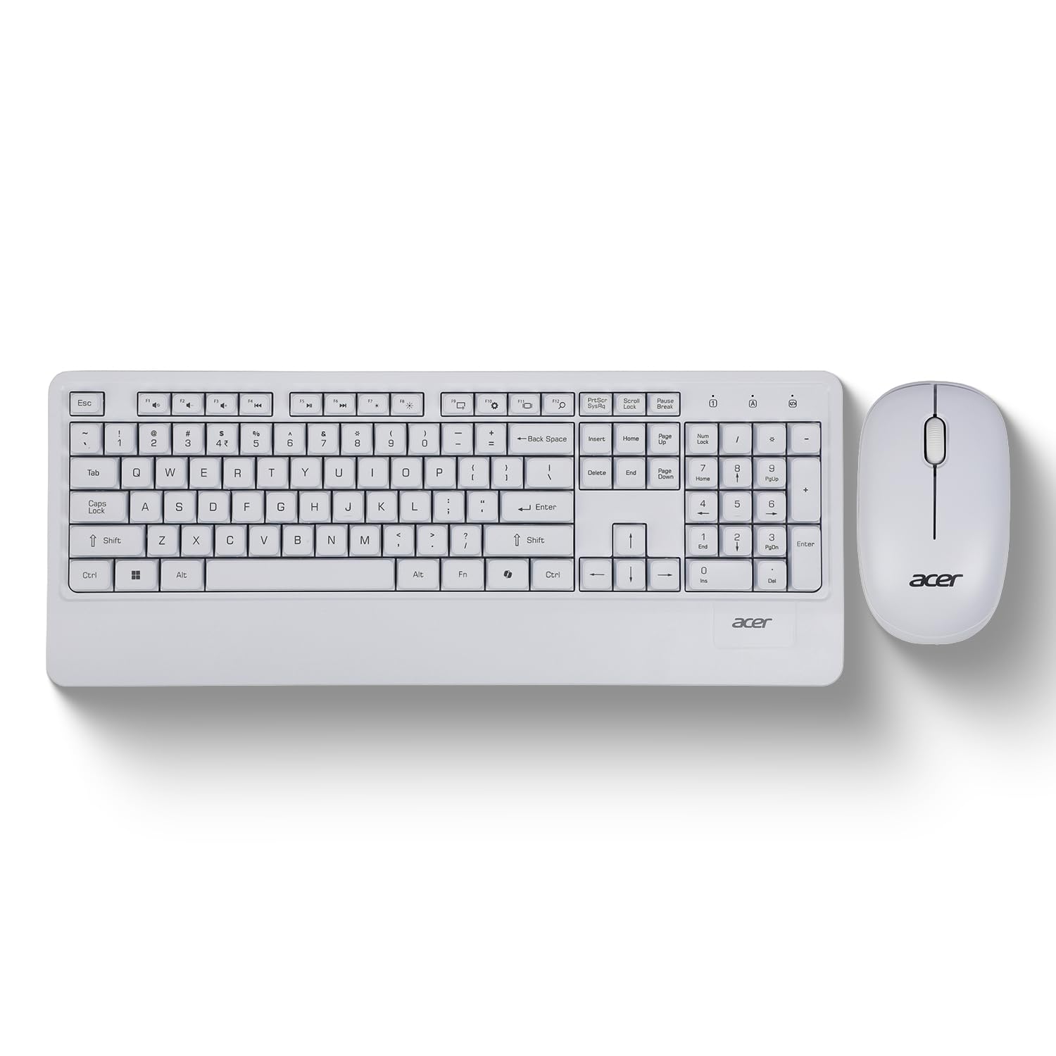 Acer PalmEase Wireless Keyboard & Mouse Combo with Palm Rest | 2.4GHz, 1600 DPI, Co-Pilot Key, Rupee ₹ Symbol | 10m Range, 10M Keystroke Life, Power Saving Mode | Windows & Mac Compatible – White