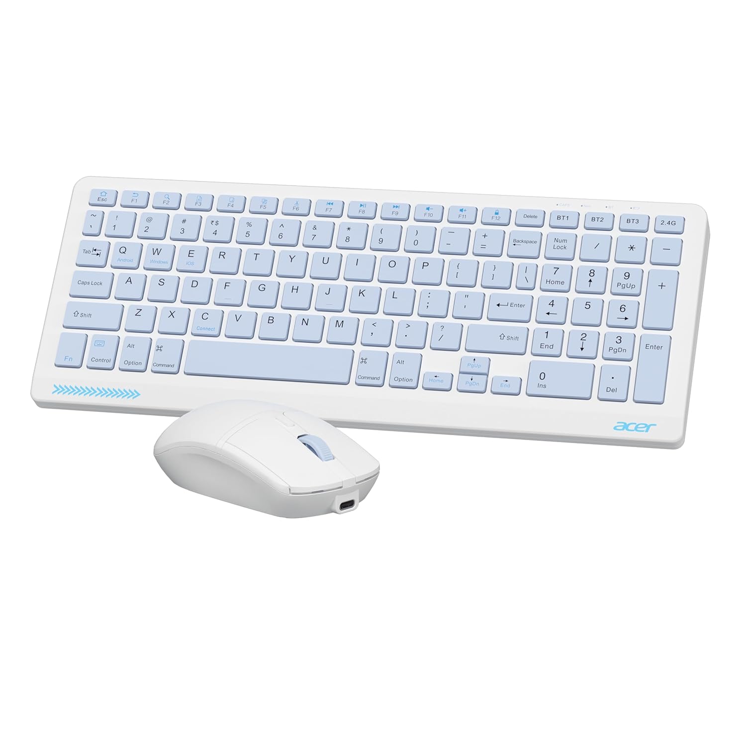 Acer ZenKeys Duo Wireless Keyboard & Mouse Combo | 2.4 GHz + Bluetooth | Rechargeable 500 mAh Type-C | 99-Key Silent Keyboard | 1600 DPI Optical Mouse | 10m Range | Windows/macOS/Linux Compatible