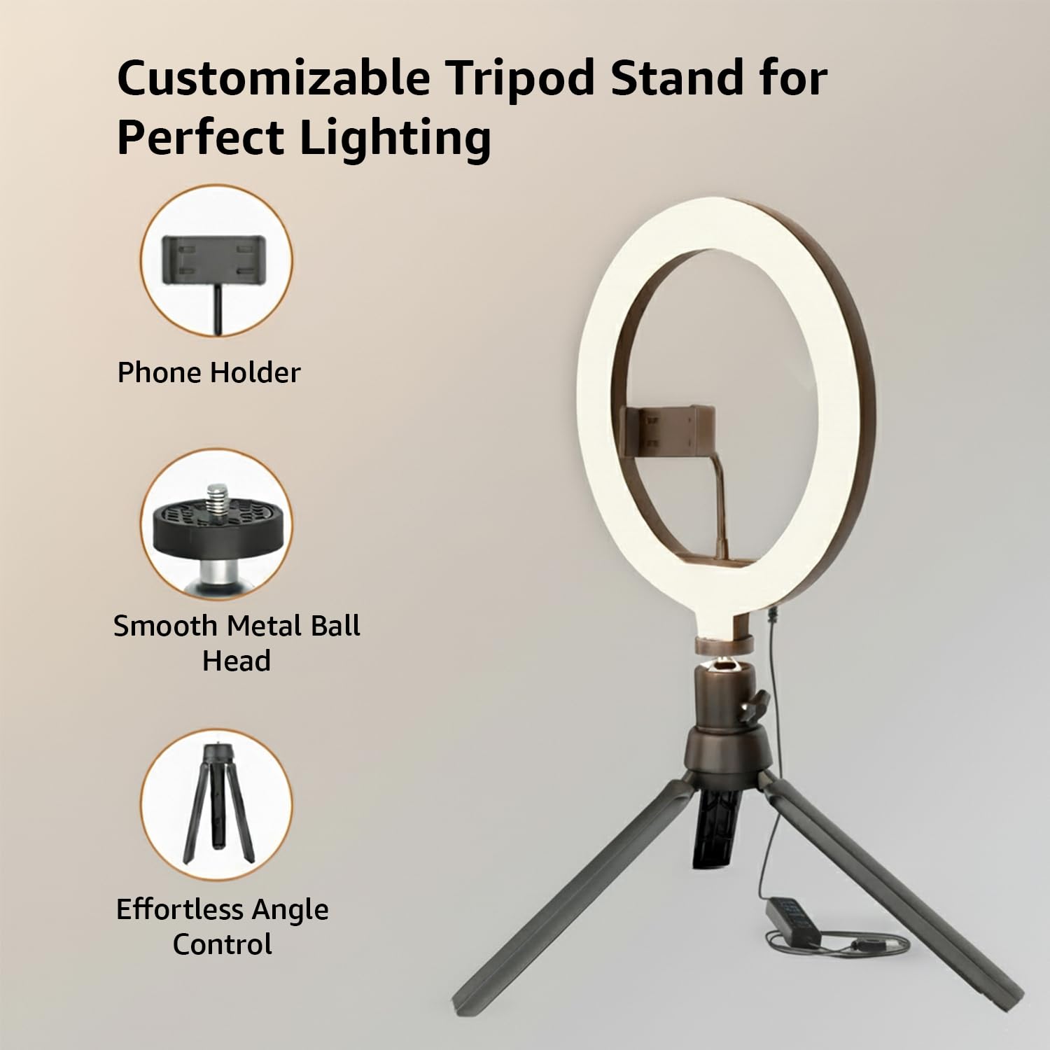 Amazon Basics 10-inch Ring Light with Tripod Stand | 3 Color Modes | 10 Brightness Settings | 360° Rotation | Suitable for Mobile Phones & Camera, YouTube, Photoshoot, Videography and More