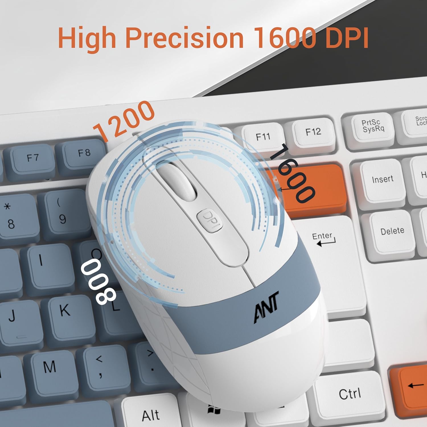 Ant Master 30 Pro Wireless Combo Keyboard & Mouse Set |104-Key Membrane Keyboard |Adjustable DPI Upto 1600 Mouse |2.4GHz USB Receiver | 10M Range|AA Battery Included| White Grey Orange-Win Mac Linux
