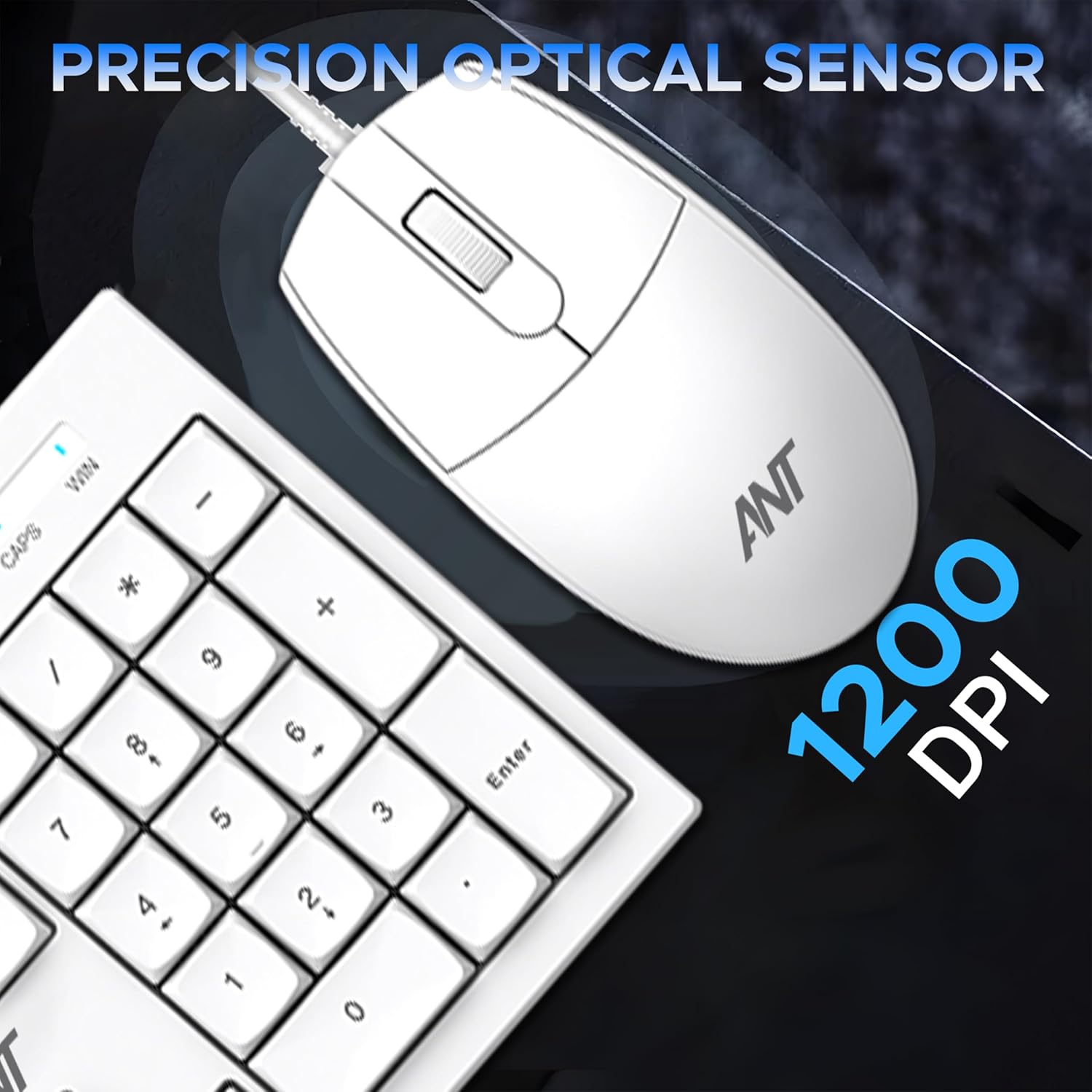 Ant MASTER10 Full Size Wired Combo Keyboard and Mouse Set, 104 Keys, 6 Anti-Ghosting, Membrane Switch, 3D Optical Mouse, 1200 DPI, USB Plug & Play, for Windows, Mac, Linux – White