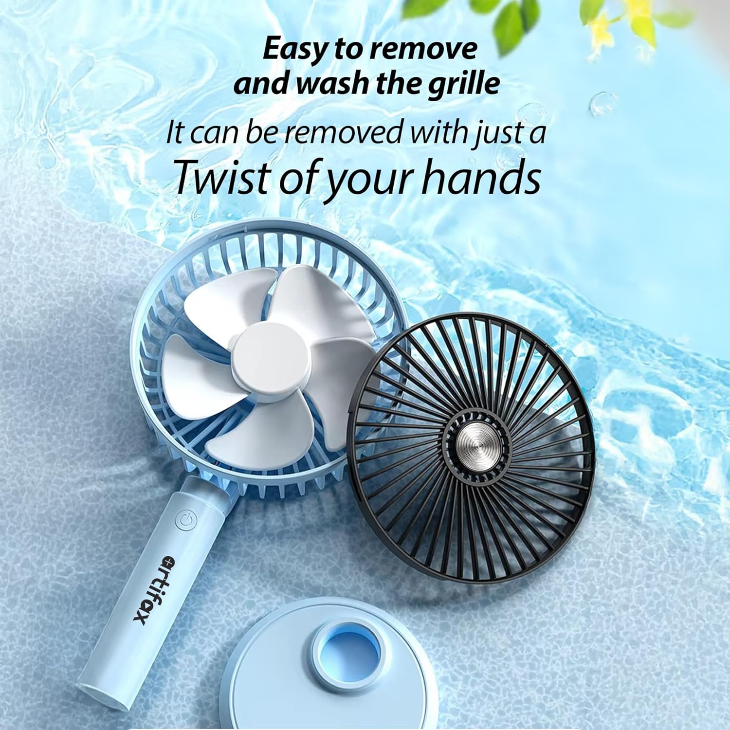 Artifax Rechargeable Portable Fan ART-B-3 | 90° Rotation | 3-Speed | Built-in Mobile Holder | Removable Grill | Type-C Charging | Compact, Durable & Easy to Use (Blue)
