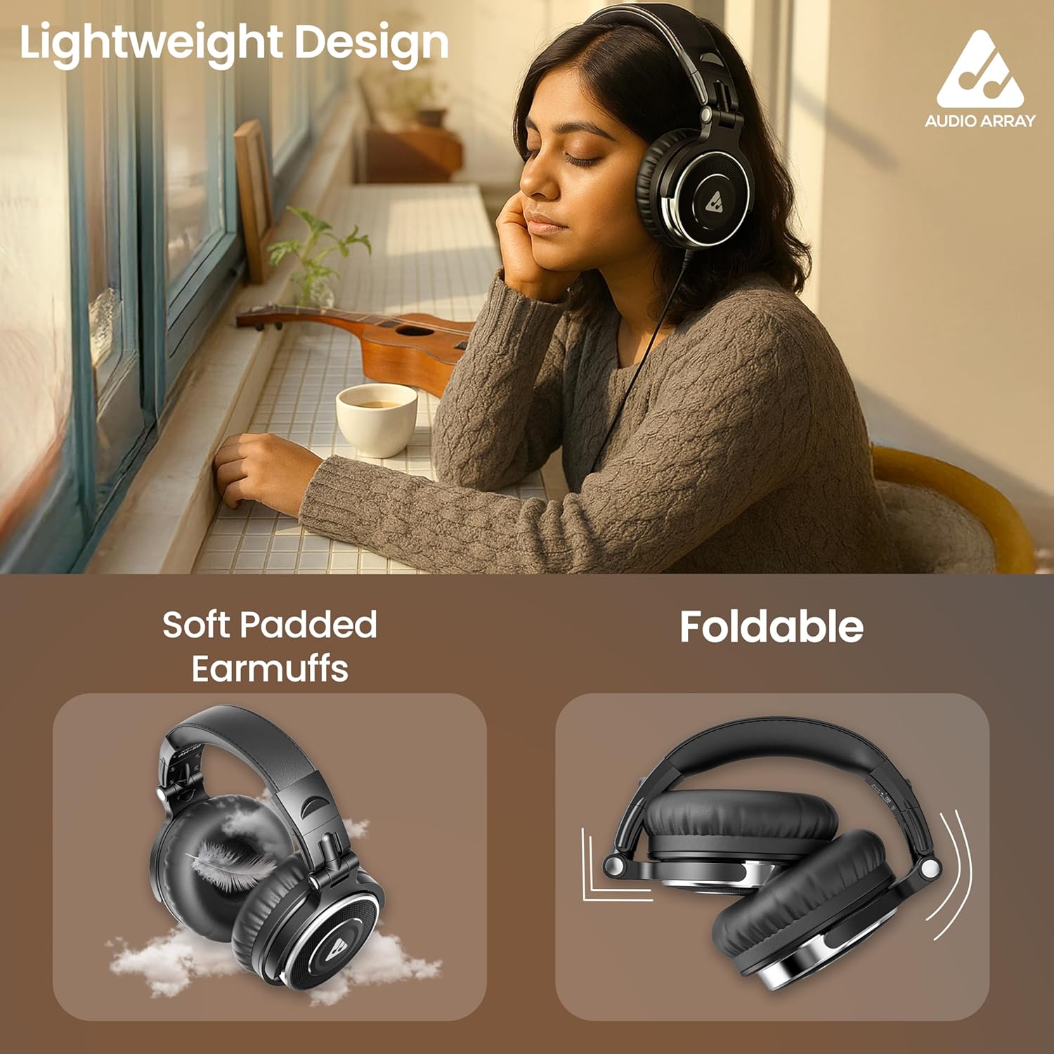 Audio Array AH-50 Professional DJ Headphone | 50mm Drivers | 32Ω | 20Hz-20kHz | Dual Detachable Cables With Mic & Controls | Buddy Share Technology | 105 dB SPL | One Ear Listening | Monitoring,Mixing