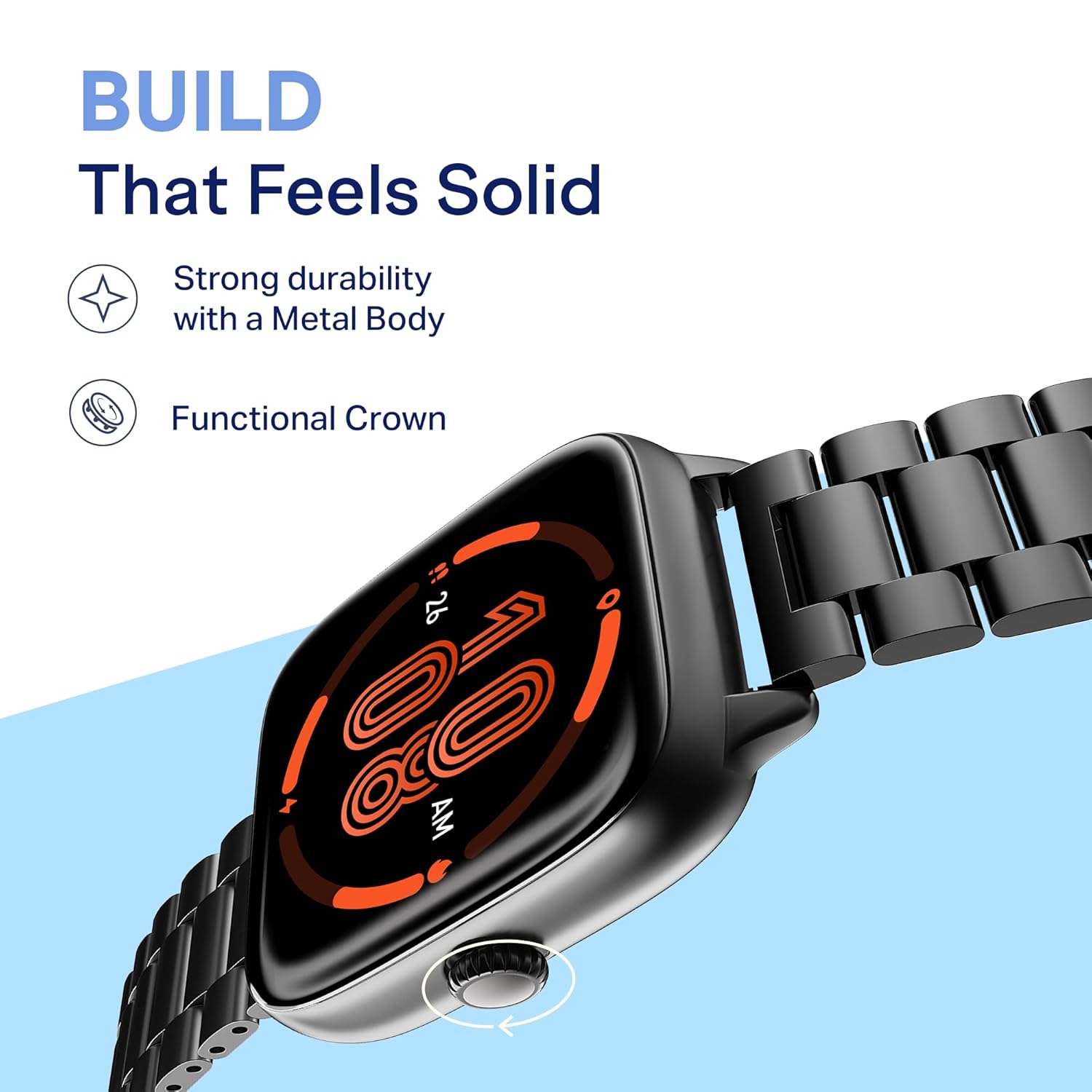 Premium Metal Built: Storm Verge is designed to suit all genders with a unisex fit that comfortably matches any wrist. Crafted with a lightweight premium metal body, Storm Verge feels both solid and premium. The metal frame is built tough for active days yet sleek enough to complement your daily outfits.
