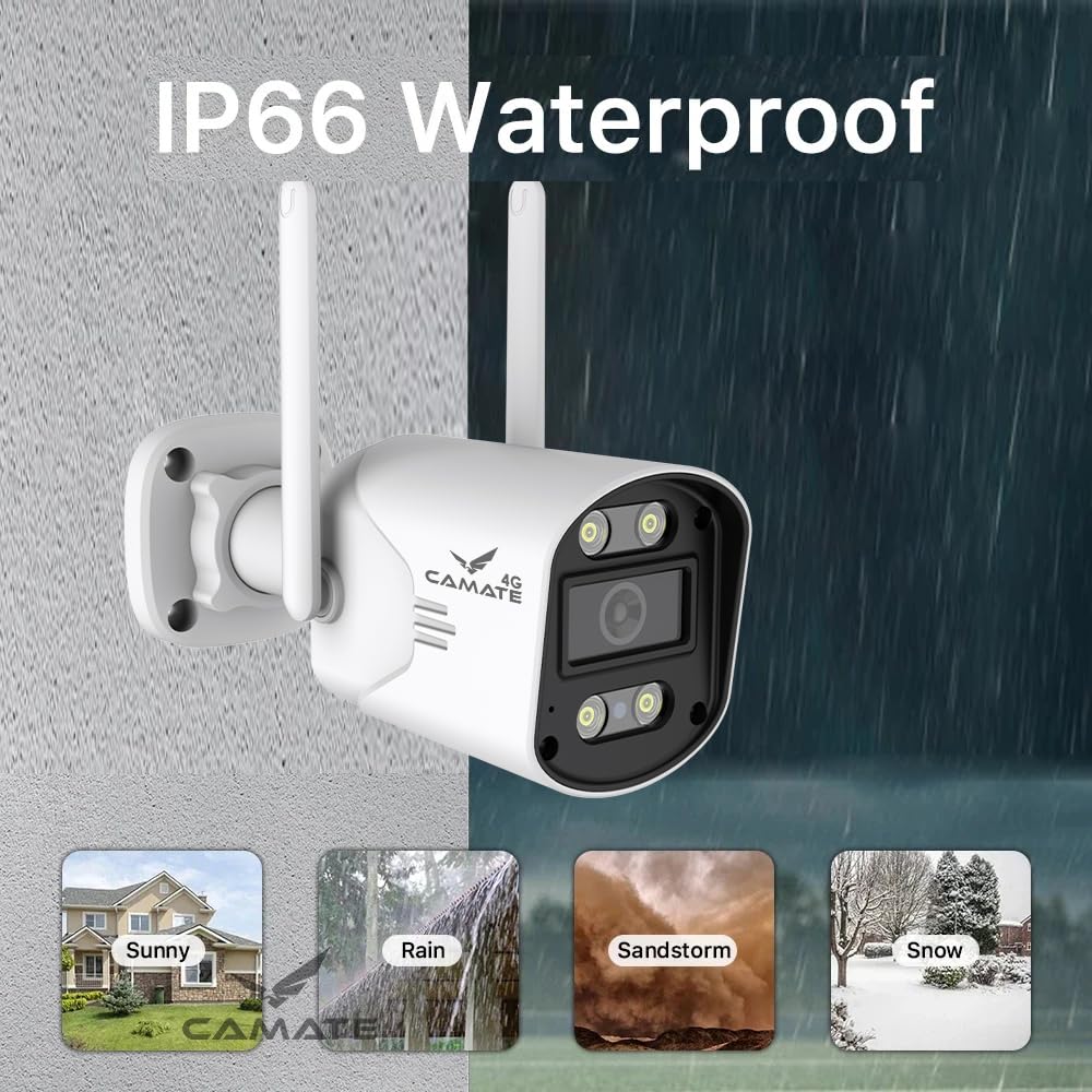 Camate Knight 3MP 4G SIM Based Wireless Bullet CCTV Camera is a powerful, all-weather outdoor security camera designed for Indian homes, offices, farms, and construction sites. With 4G SIM connectivity, it operates without WiFi or electricity dependency, providing real-time remote monitoring from anywhere. Featuring a 3MP Full HD lens, this camera delivers crystal-clear color night vision for day and night protection. Its IP66 waterproof and dustproof body ensures durability under extreme Indian weather conditions, from heavy rains to scorching heat. With two-way talk, motion detection alerts, and support for up to 256GB SD card, the Camate Knight provides round-the-clock smart, wireless, and reliable surveillance — perfect for remote areas, farmhouses, shops, and parking lots.