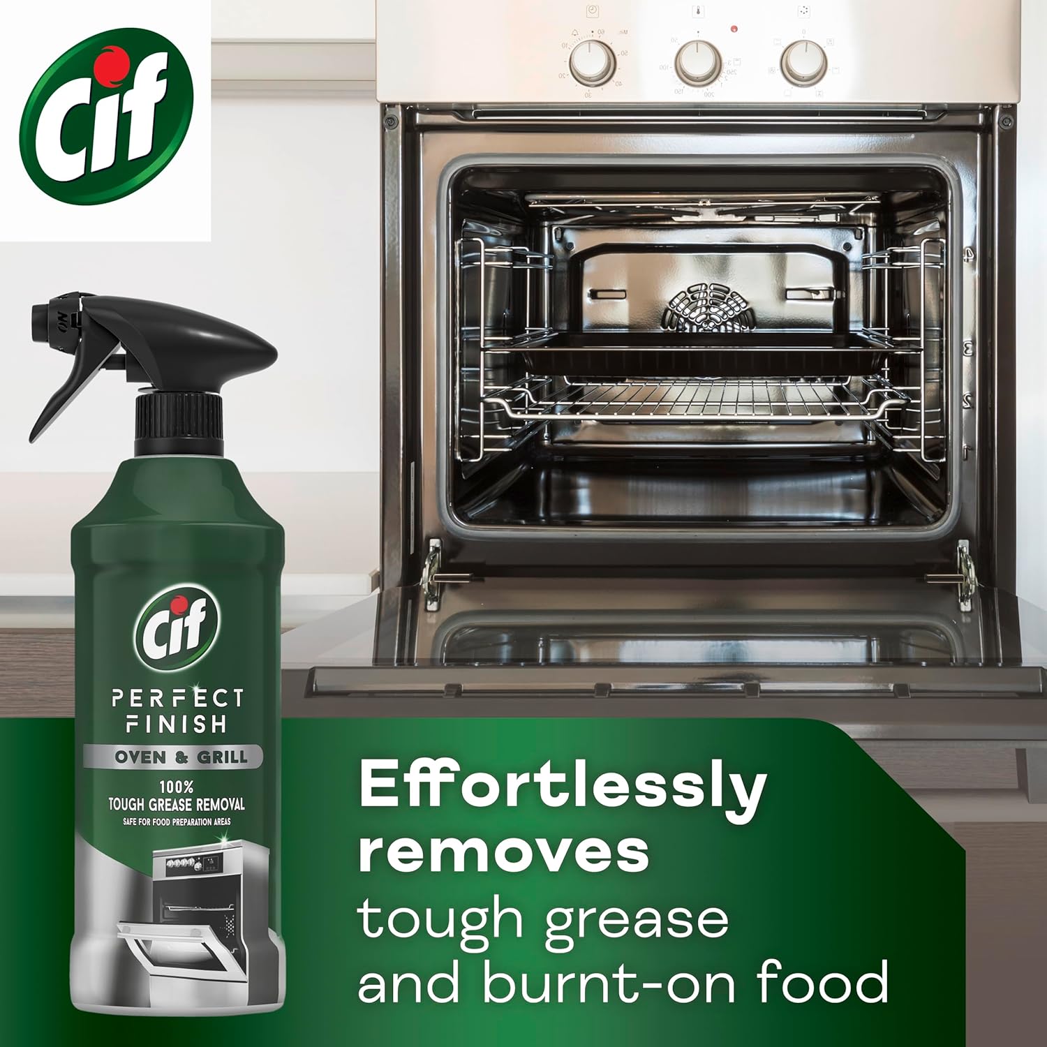 Restore the sparkle of your ceramic and stainless-steel oven from the inside out with Cif Perfect Finish Oven & Grill Specialist Cleaner Spray