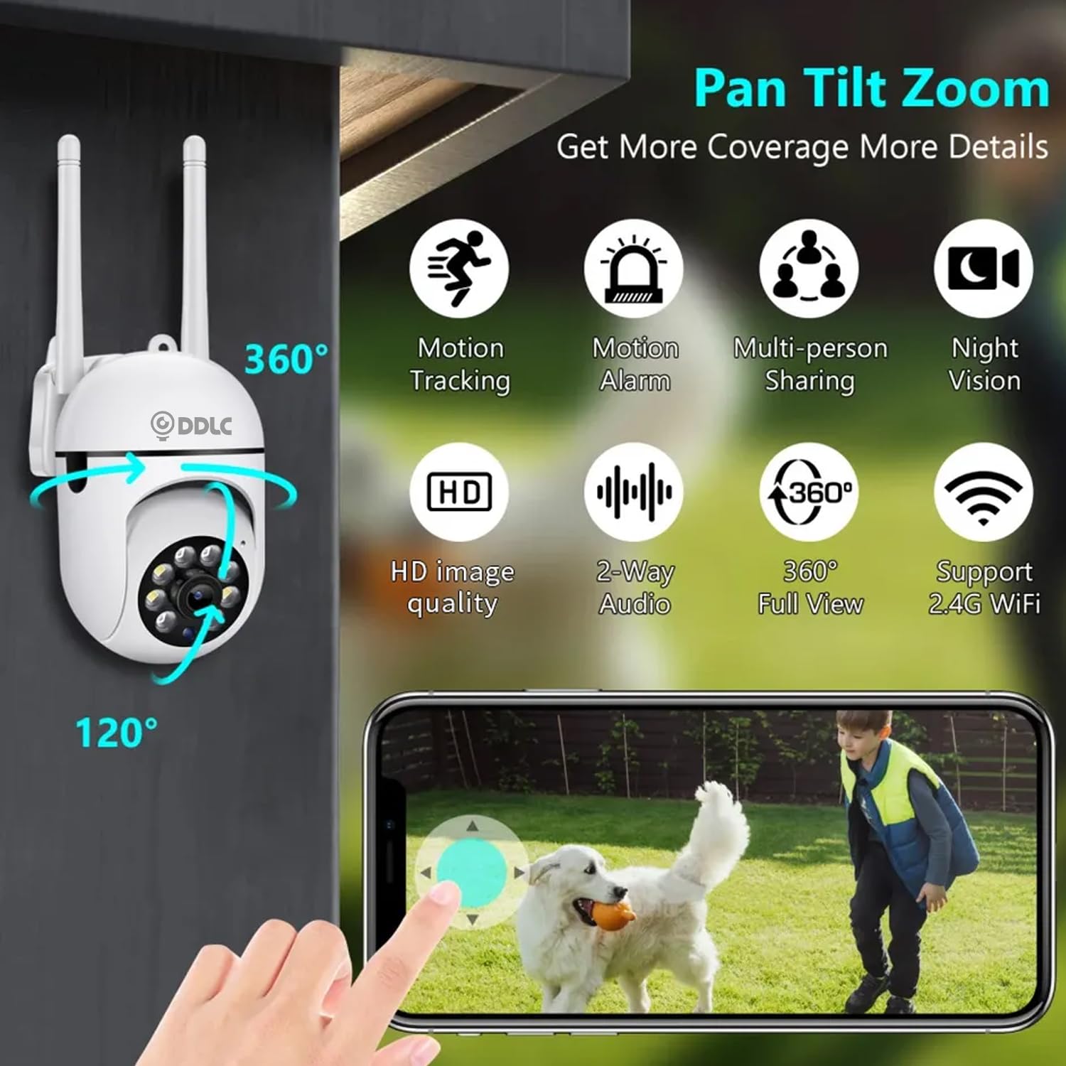 DDLC Mini PTZ WiFi Security Camera | 360° Pan Tilt Zoom | Motion Tracking & Alarm | HD Night Vision | Two-Way Audio | 2.4GHz Outdoor CCTV Camera (mini ptz)
