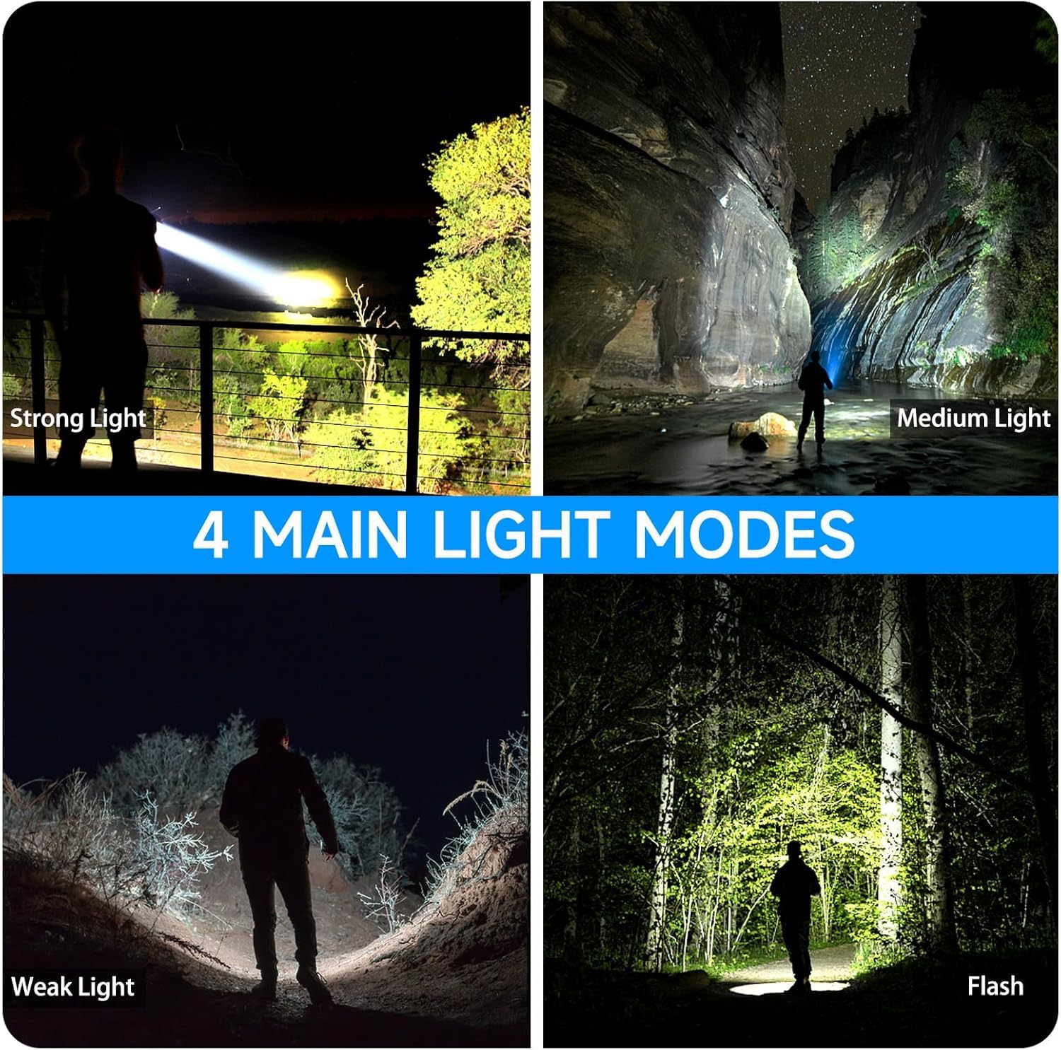 IP65 Waterproof & Aluminium Body: This bright light torch is made of high-quality waterproof aluminum alloy material, protecting it from corrosion, rust, and breakage. As a search light with high lumens, it ensures durability and reliability. The high beam torch light is suitable for outdoor use, such as camping or hiking, thanks to its robust waterproof design.