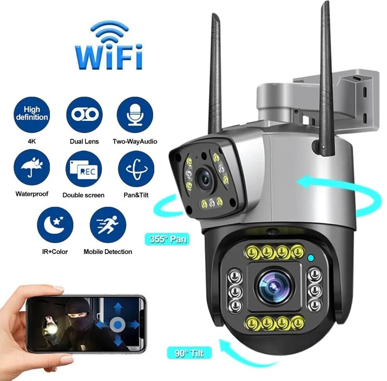 Dr Vision 6MP WiFi Dual Lens Outdoor PTZ CCTV Camera with 360° View, Two-Way Audio, Night Vision, Wireless Security Camera for Home with Weather Resistant & Mobile App V380 Pro (Dual Lens PTZ)