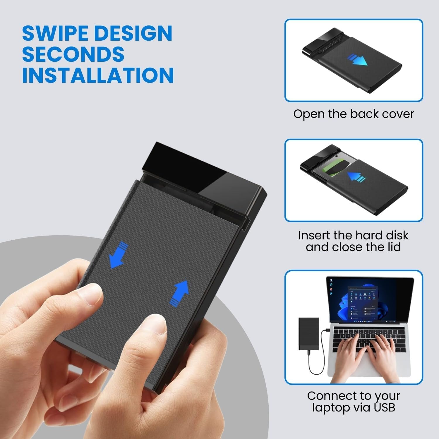 Tool Free Design for Easy Installation: No tools or screws needed just slide open the enclosure, insert your 2.5 inch 7mm or 9.5mm SATA drive and start using instantly without any hassle.