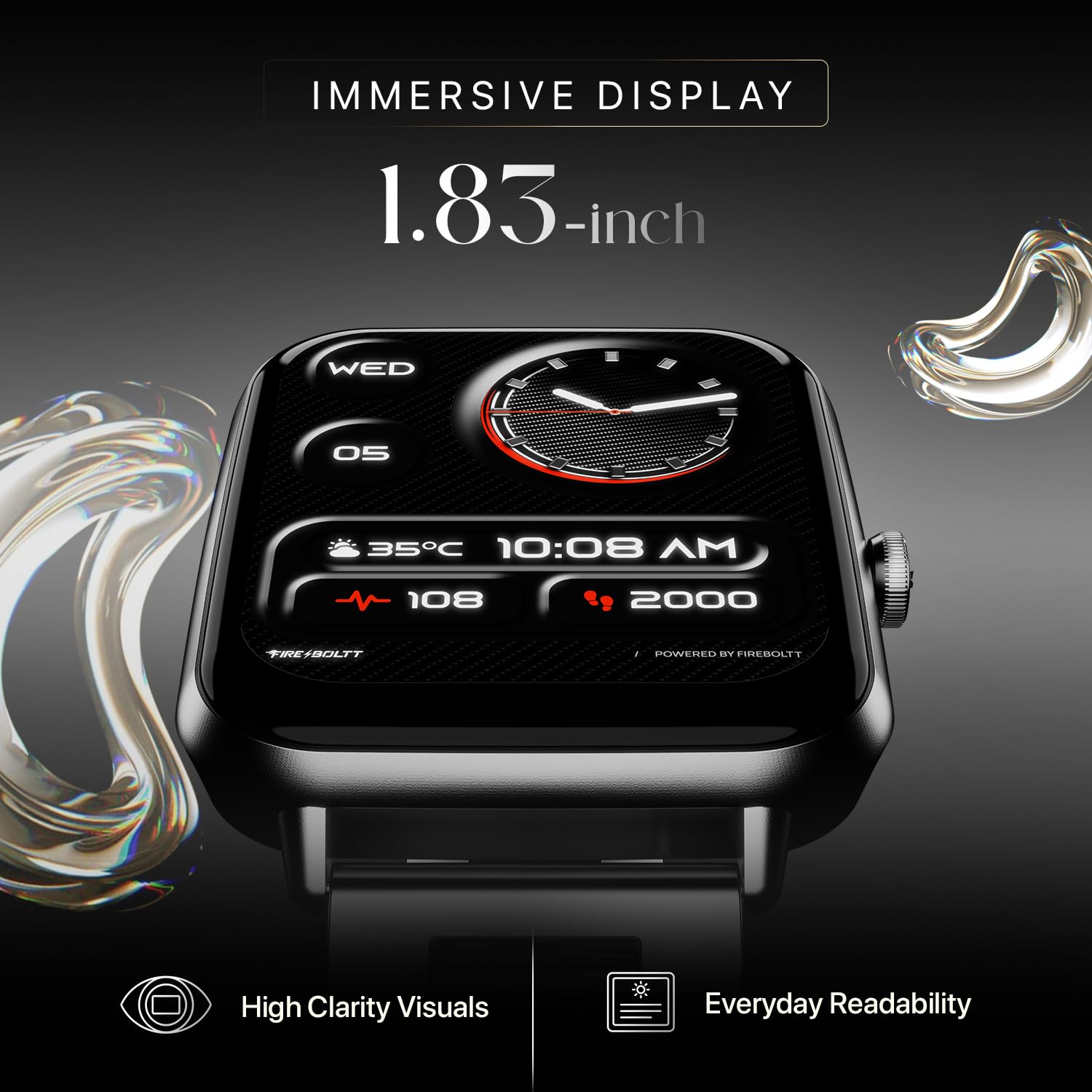 Large 1.83” Display Smart Watch for Clear Viewing – Enjoy an immersive smartwatch experience with a 1.83-inch full display, offering smooth touch navigation, vibrant watch faces, and easy readability for calls, fitness stats, and notifications.