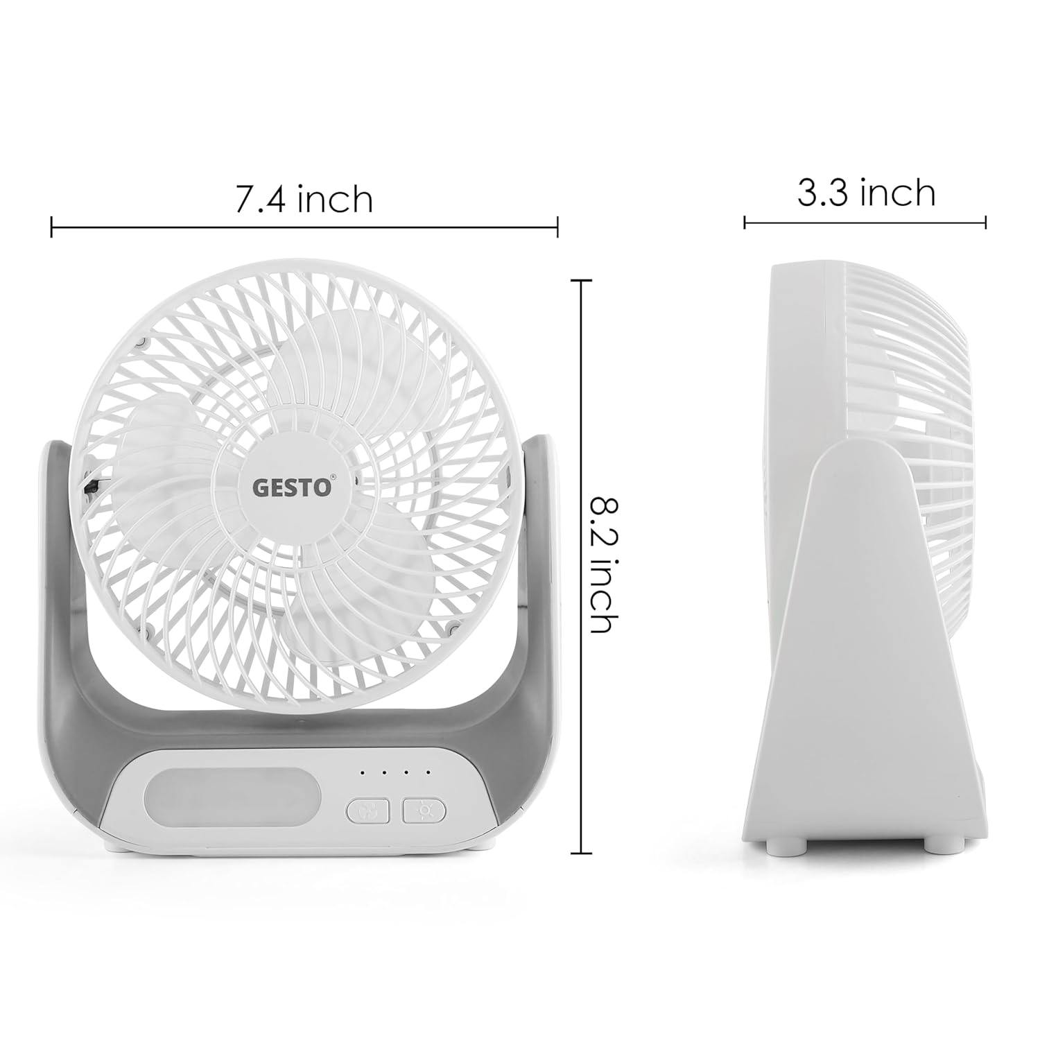 Gesto 7.4 Inch High Speed Rechargeable Table Fan for Home – USB Charging Battery Fan With Led Light | 2400mAh Battery, Upto 8 Hours Runtime | 3 Speed Modes Portable fan for Home, Office,Kitchen-Grey