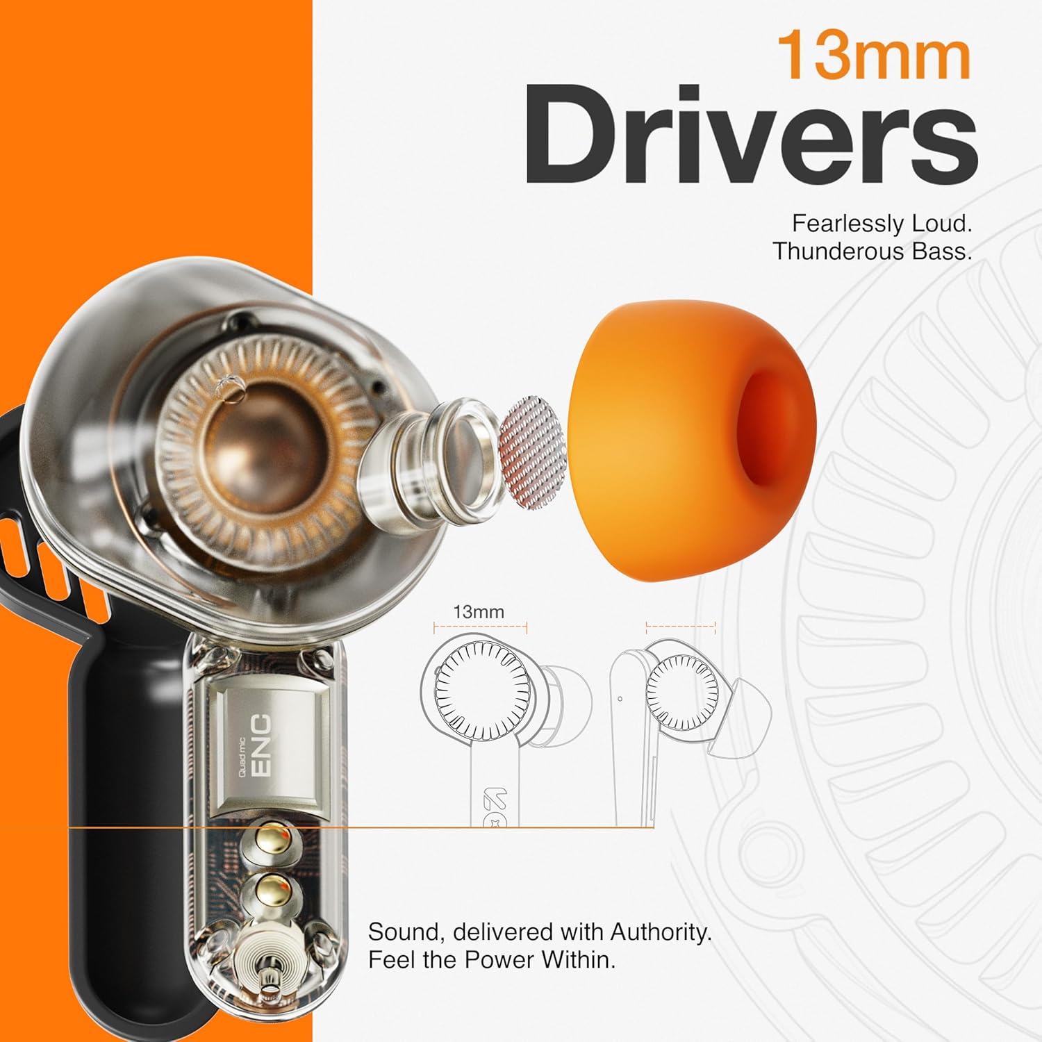 GOBOULT Tenet TWS Earbuds with 75H Playtime, App Support, Quad Mic ENC, 50ms Ultra Low Latency, Dual Device Pairing Buds, 13mm Driver Ear Buds, Bluetooth 5.4 Wireless Earbuds (Turbo Orange)