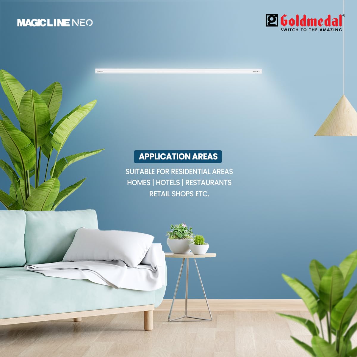 The Goldmedal Magic Line Neo LED batten featuring a durable polycarbonate housing and is quipped with glarefree optics, guaranteeing, uniform light dispersion. Renowned for their energy efficiency, they can help users cut down on energy costs compared to T5 fluorescent tubes. With a high lumen efficiency of upto 100Im/w, they ensure bright illumination white consuming less power.