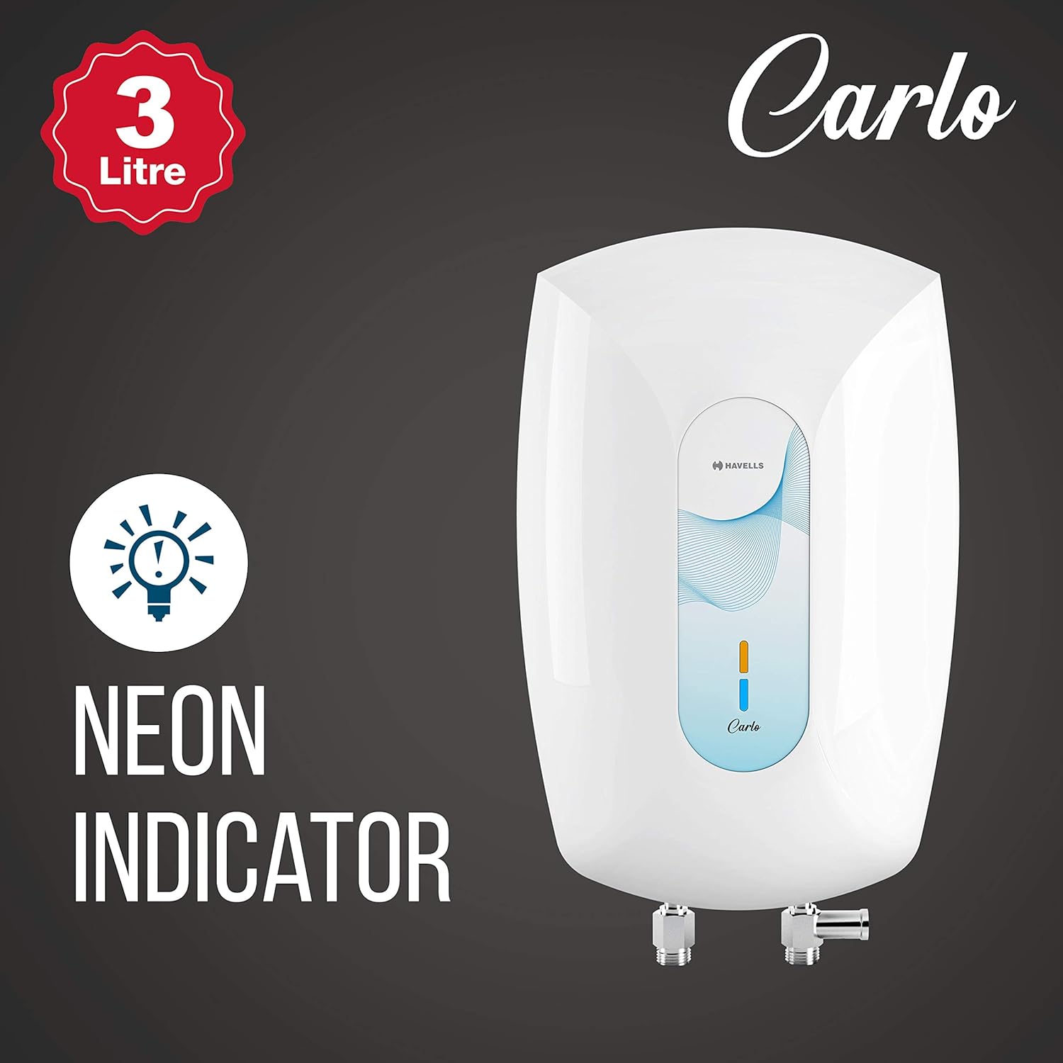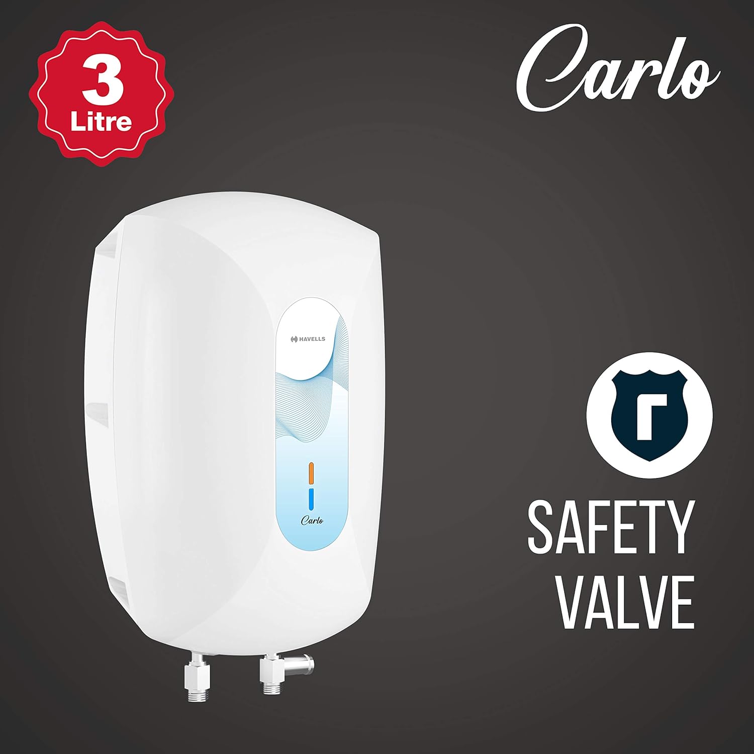 Havells Carlo 3 Litre Instant Water Heater (White Blue), Vertical Mounting