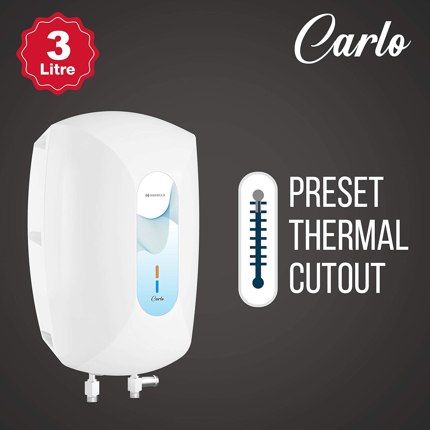 Type: Instant ; Capacity: 3 Litres; Wattage: 3 Watts; Pressure: 6.5 Bars4 Level Safety : Thermostat, Automatic Thermal Cut-Out, Pressure Release Valve and Heating Indicator