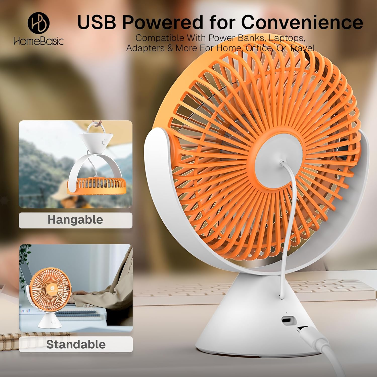2-in-1 Desk Fan & Hanging Fan – Functions as a mini desk fan or can be hung using the built-in hook. Perfect for bedrooms, kitchens, tents, strollers, or camping setups.