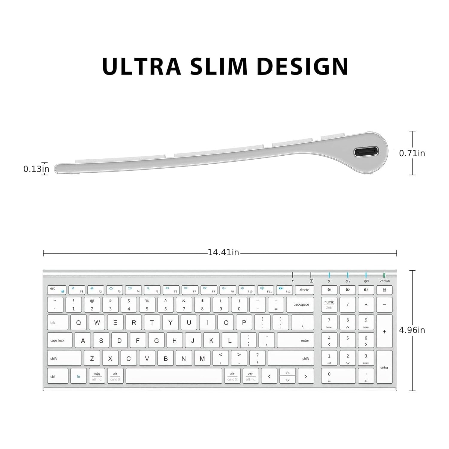 iClever Bluetooth Keyboard BK10, Multi-Device Rechargeable Wireless Keyboard with Number Pad, Ergonomic Design, Ultra-Thin, Minimalist Design Keyboard for Windows iPad iPhone Tablet, Sliver