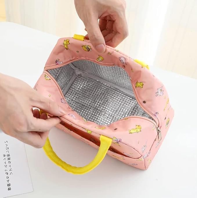 Insulated Lunch Bag for Women, Kids, Work & School Waterproof Thermal Cooler Tote Bag for Picnic, Tiffin Box Storage, Reusable & Portable Lunch Organizer (Cat Design- Pink)