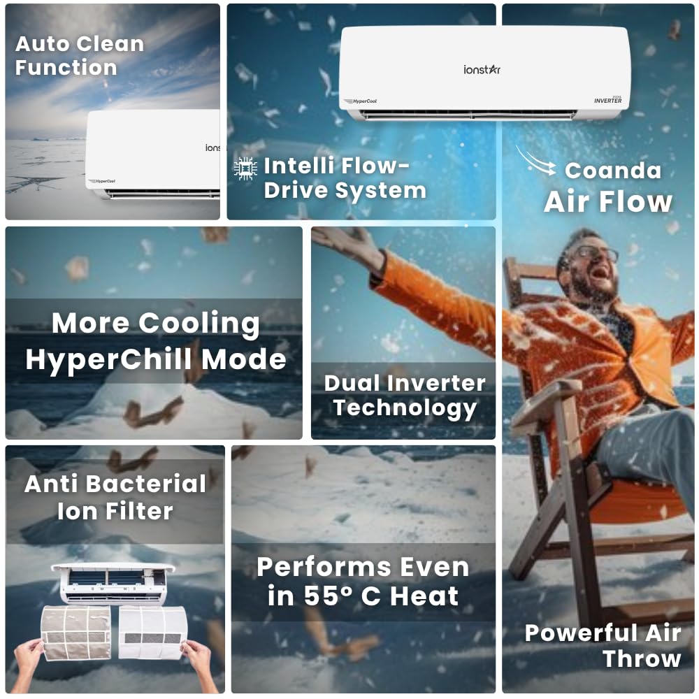 Ionstar 1.5 Ton 3 Star Dual Inverter Split AC – | Copper Coil | 30% More Cooling 5150 Watts Capacity | 6-1 Flexi Modes | Heavy Duty Indoor | Blue Fin | Auto Self Clean – Diagnosis| IN153S-25ME5190-NL