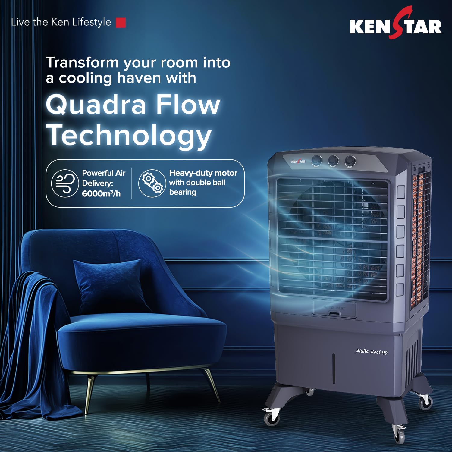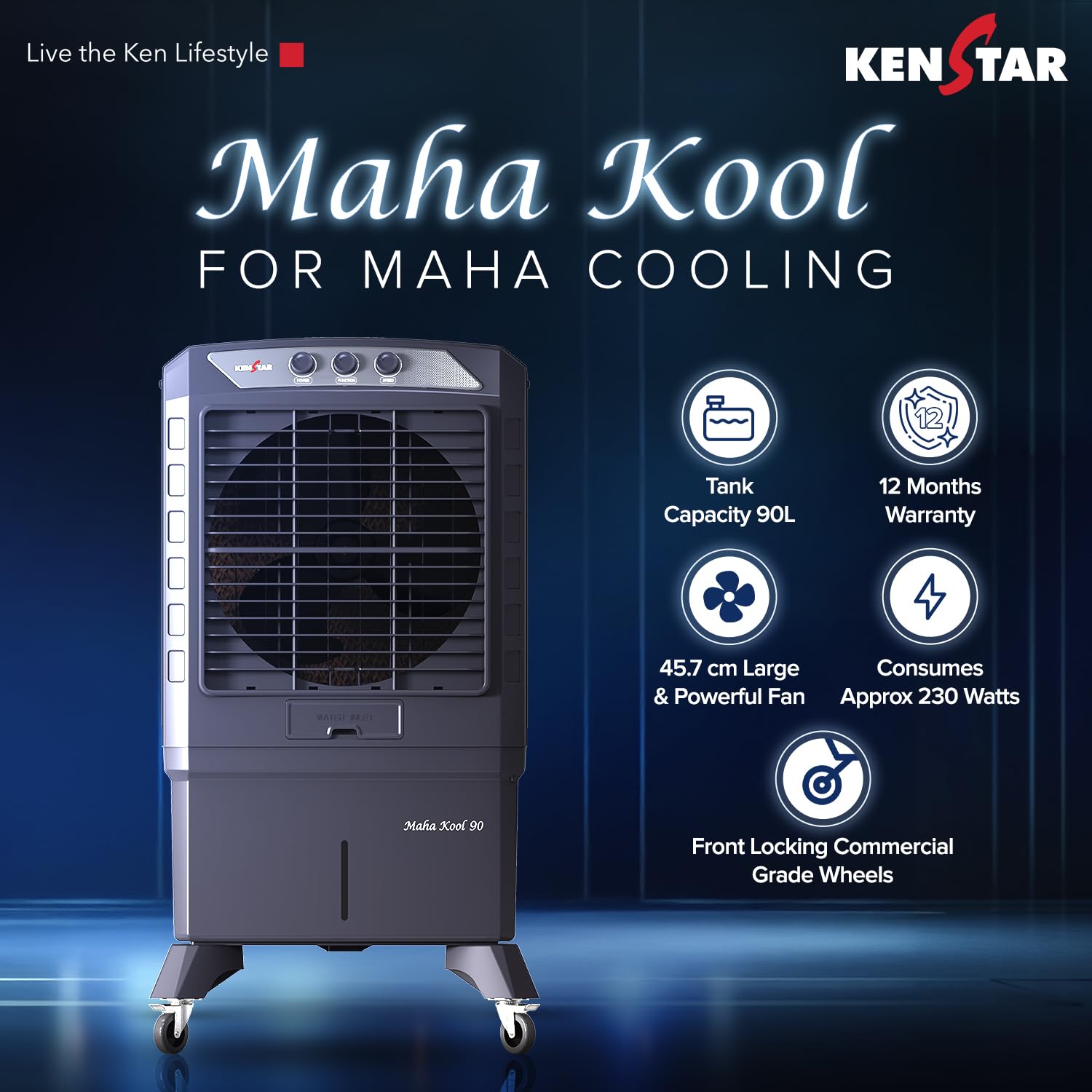 Kenstar MAHA KOOL HC 90 L Desert Air Cooler|Anti-Bacterial Honeycomb Pads|High-Speed Fan|Inverter Ready|50Ft Powerful Air Throw|1-Yr Product Warranty+5-Yr Warranty on Pump&Motor|5-Star BEE Rating|Grey