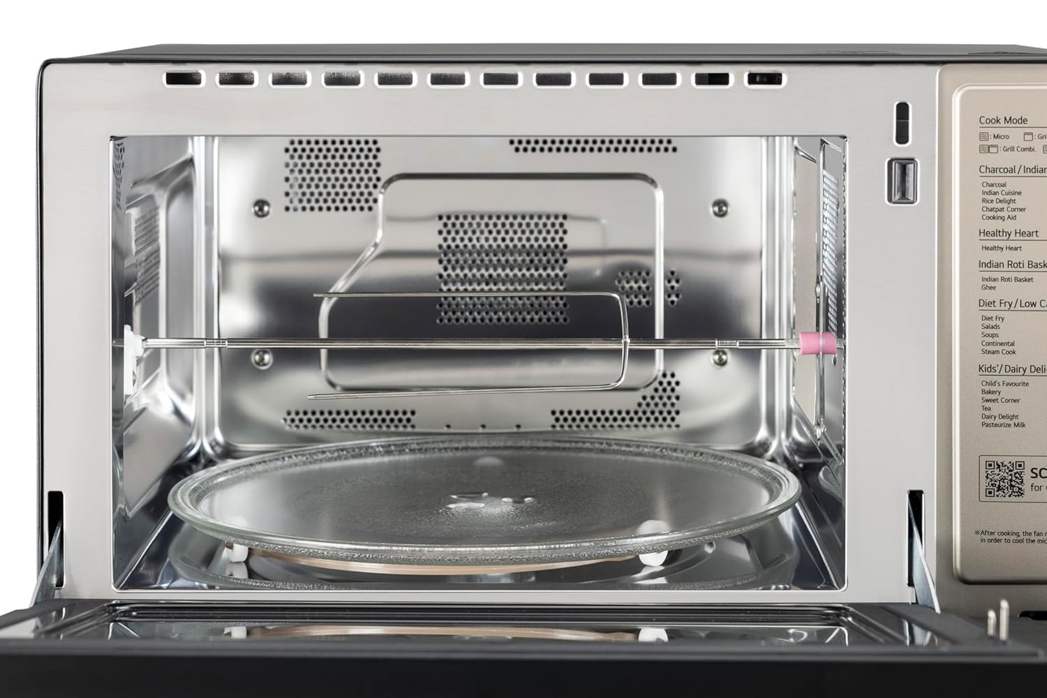 Special Features: Scan to Cook Wifi Enabled Charcoal Convection Healthy Microwave Oven; 30 Heart Healthy Recipes, Motorized Rotisserie for Bar-be-queing at home becomes easy and hassle free; Pasteurize Milk; Diet Fry Up to 88% Less Oil Guilt-free crispy delights; Elegant Unibody Design; making hygiene Ghee with absolutely no smell is a matter of 12 minutes (time may vary model to model); Charcoal Lighting Heater – maintain natural flavors, making your dishes crunchy on the outside and juicy on the inside; Interior light; Programmable; Steam Clean; Turn table – 34cm