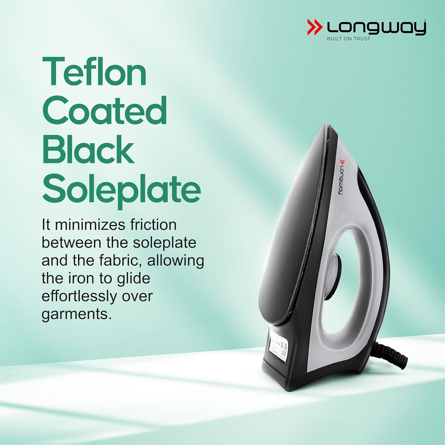 Longway Kwid Light Weight Non-Stick Teflon Coated Dry Iron, Electric Iron for Clothes | 2 Years Warranty (1100 Watt, Black)