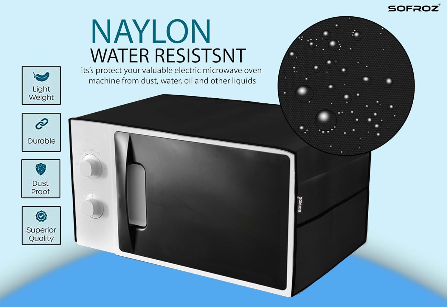 【DURABLE & HIGH QUALITY MATERIAL】 Sofroz Made from premium nylon, this microwave oven top cover is designed to protect your appliance from dust, dirt, and spills while ensuring long-lasting durability.