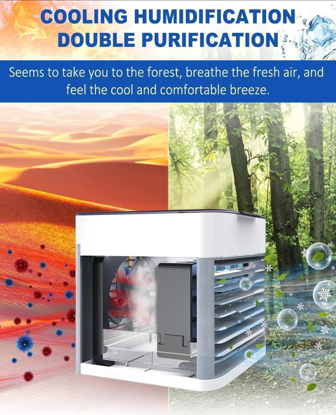 Mini Cooler For Room Cooling-Portable Air Conditioner For Home And Office-3-In-1 Arctic Cooler, Humidifier, Purifier