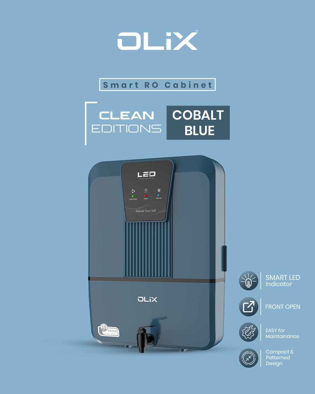 OLIX RO Water Purifier | 10L RO+UV+AM-TDS+Copper Zinc Alkaline+UV LED | Wall Mount | ABS Plastic | Auto Shut Off | for Home & Office (COBALT BLUE)
