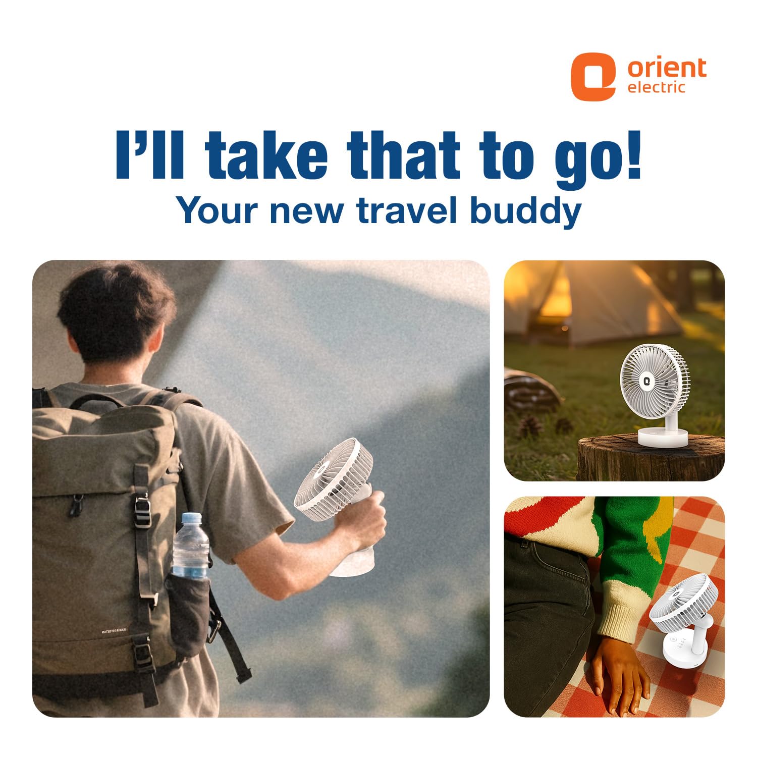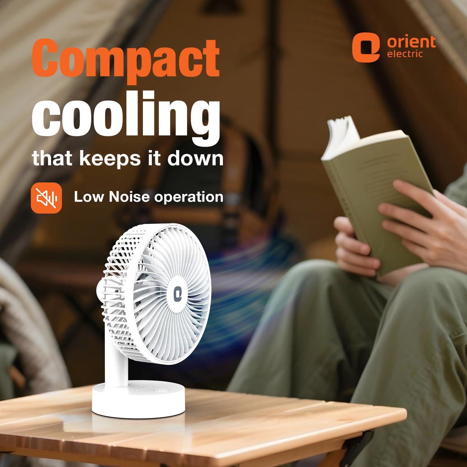 Orient Electric Elfie Rechargeable Personal Fan | 90° Adjustable Airflow | 1800 mAh Battery | 4 Speed Modes | Quiet Operation | USB Type-C Charging | Compact Mini Fan (White)
