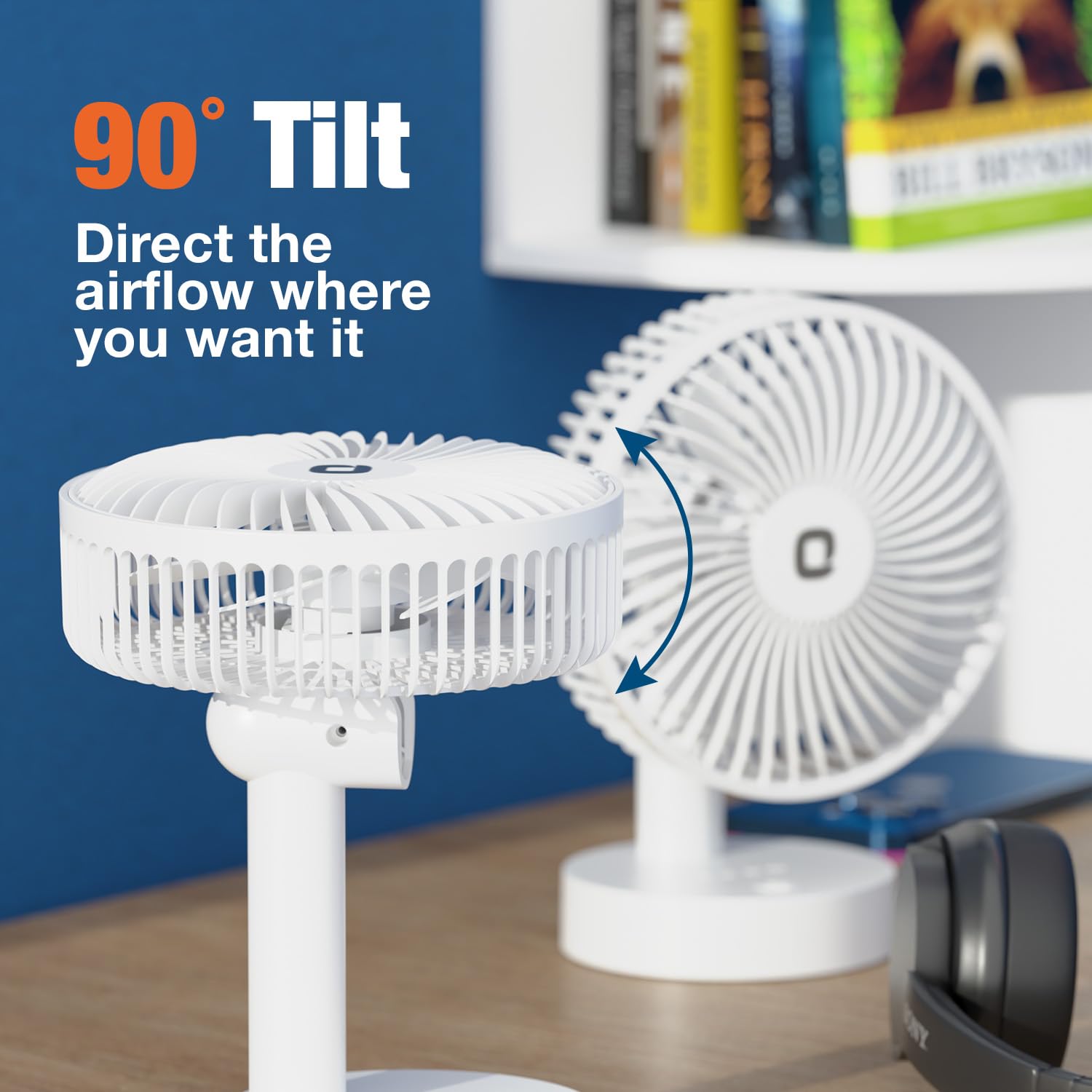 90° ADJUSTABLE AIRFLOW – PERSONAL COOLING CONTROL Tilt the fan vertically up to 90° to direct airflow exactly where you want it.