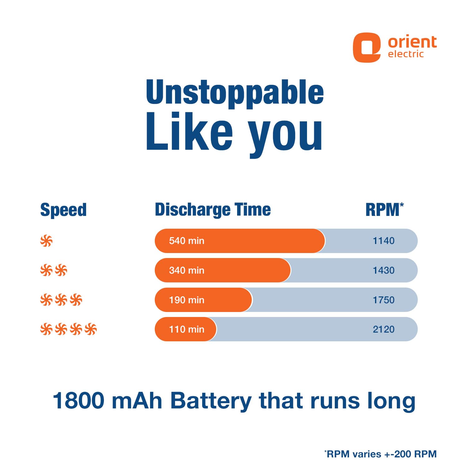 RECHARGEABLE 1800 mAh BATTERY – LONG BACKUP TIME Enjoy up to 9 hours of cooling on a single charge at low speed, with easy USB Type-C charging that powers up fully in about 3.5 hours.