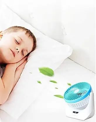 This portable rechargeable mini table fan is designed to deliver powerful cooling in a compact and lightweight form, making it ideal for home, office, travel, and outdoor use. With its built-in 3000mAh battery, the fan provides reliable performance and can be conveniently charged using a USB charger, power bank, or computer.