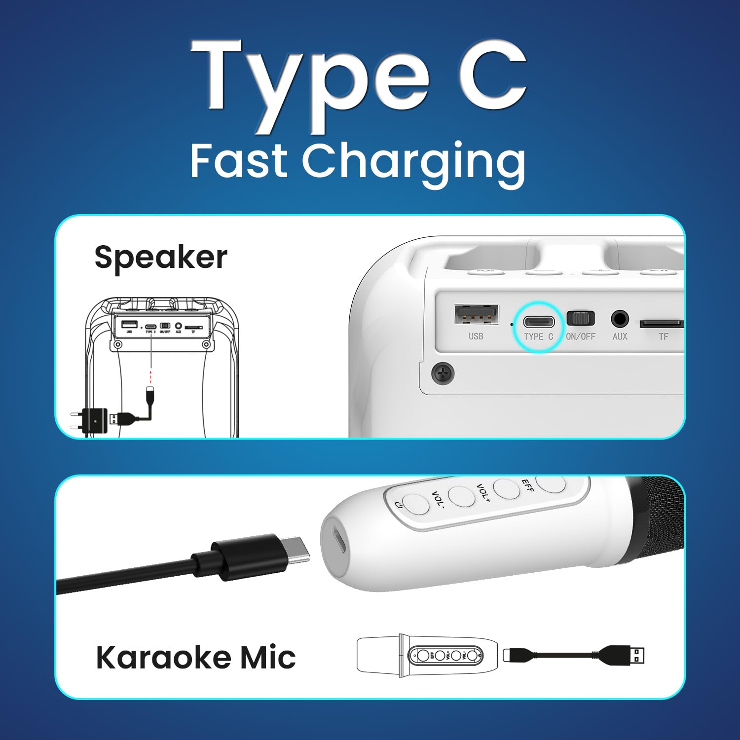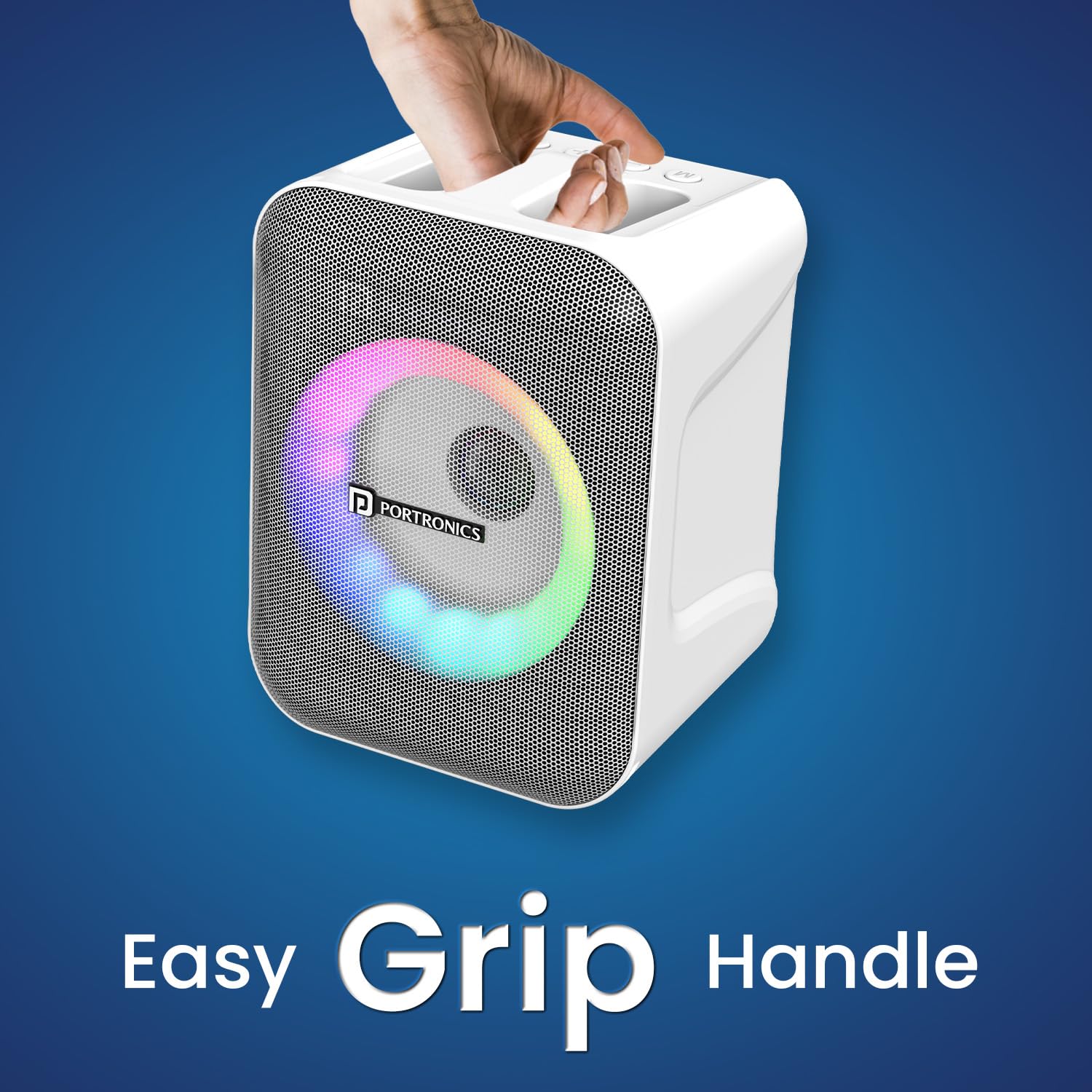 Portronics Apollo One 20W Wireless Bluetooth Portable Speaker with Wireless Karaoke Mic, 5 Hour Playtime, RGB LED Light, Bluetooth V5.3, Easy Grab Handle, USB/AUX in/TF Card, Type C Charging(White)