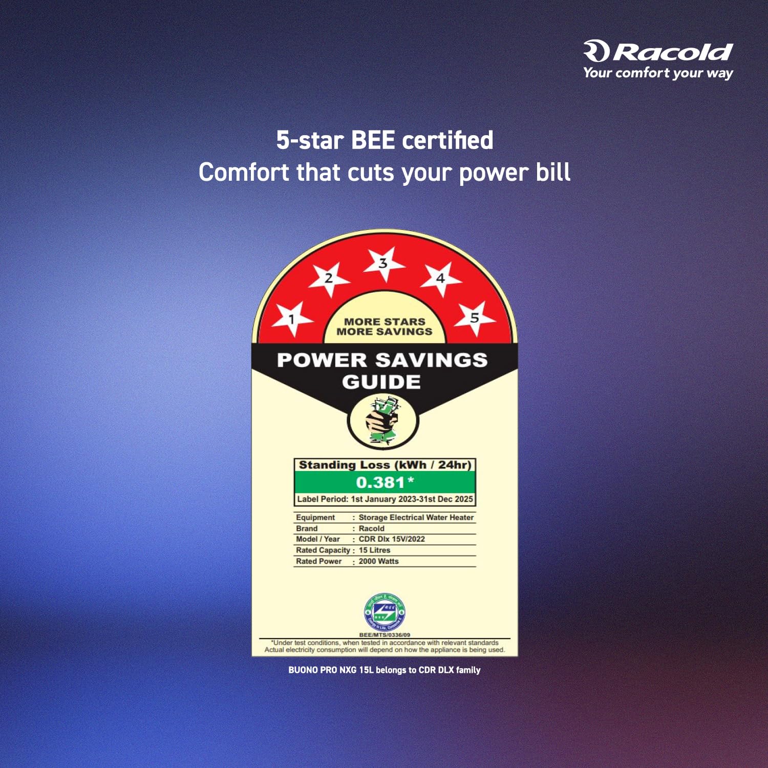 Racold Buono Pro NXG 15L ABS Body 5 Star Water Heater (Geyser) 5+2 Yrs Tank Warranty, Corrosion Prevention With Superior Titanium Enameled Tank Coating, Suitable for Buildings, for elegant aesthetics
