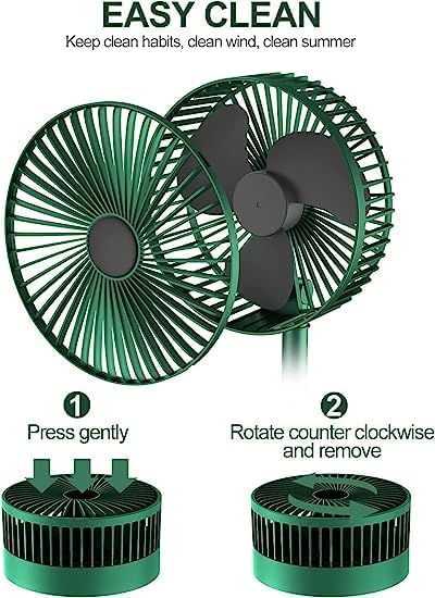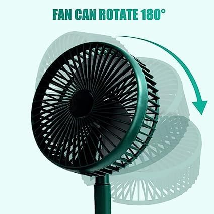● Adjustable Height & Angle: Customize your airflow with a 180° tilt and 360mm adjustable telescopic rod. Enjoy cool, comfortable wind from multiple angles and heights.