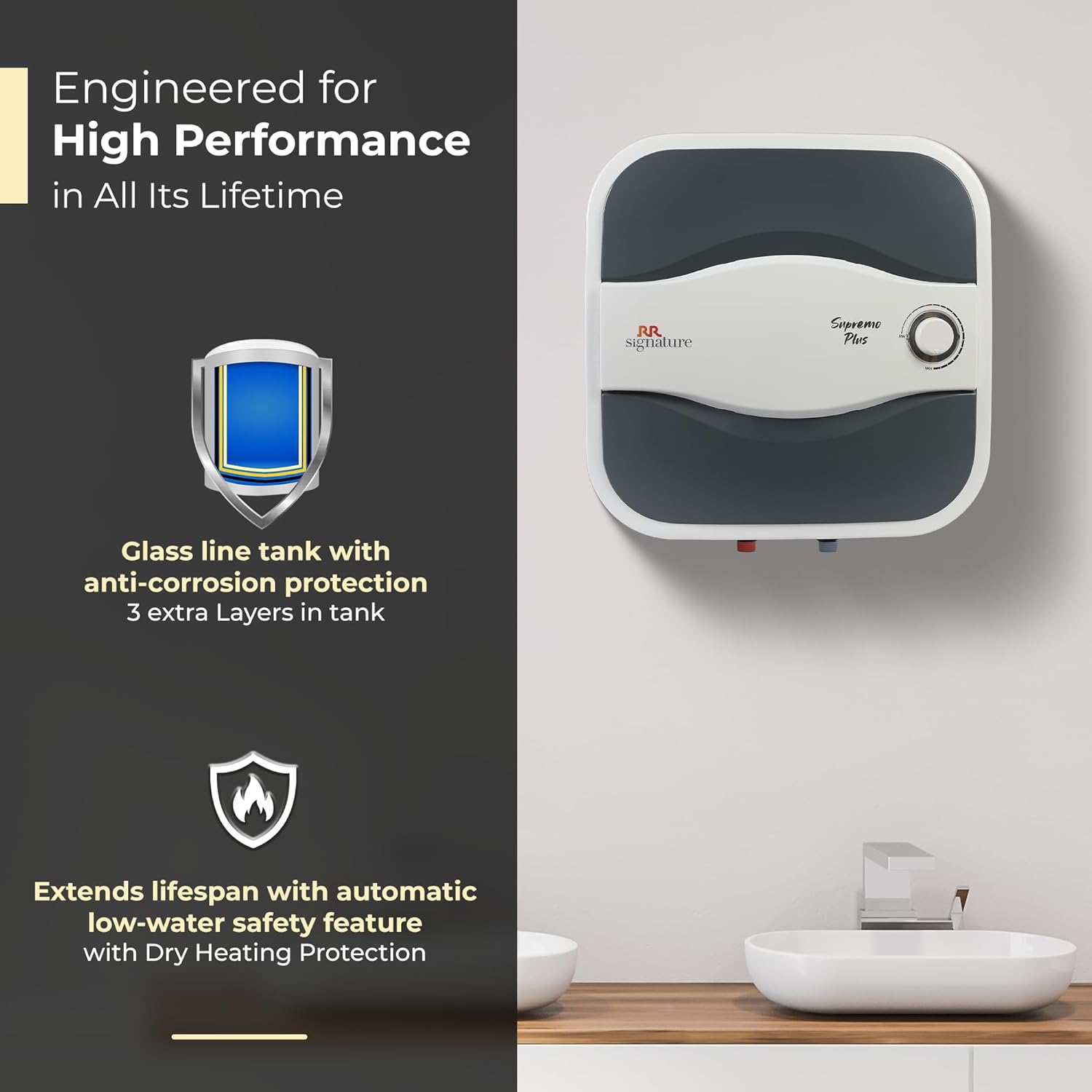 RR Signature Supremo Plus 10L Storage Water Heater |Glass Line Tank|8 Bar, High Rise Buildings |2 Yr Warranty on Product & 6 Yr on Tank by RR | Free Installation & Pipes