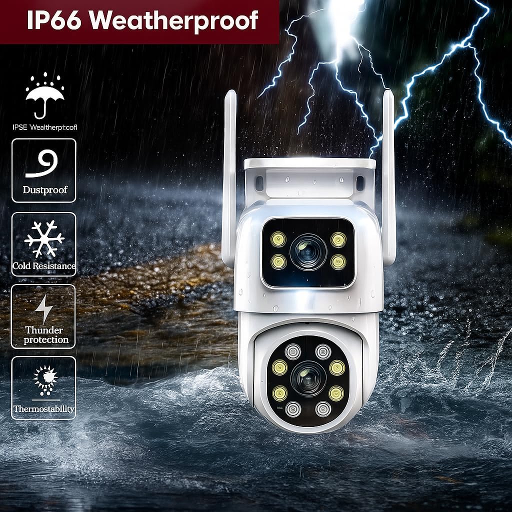 📸 Dual Lens 5+5MP Ultra HD Quality – Capture every detail with crystal-clear resolution thanks to the dual-lens setup (PTZ + fixed view). Get a wide panoramic angle along with a zoomed focus for complete home and office monitoring. Perfect for indoor & outdoor use.