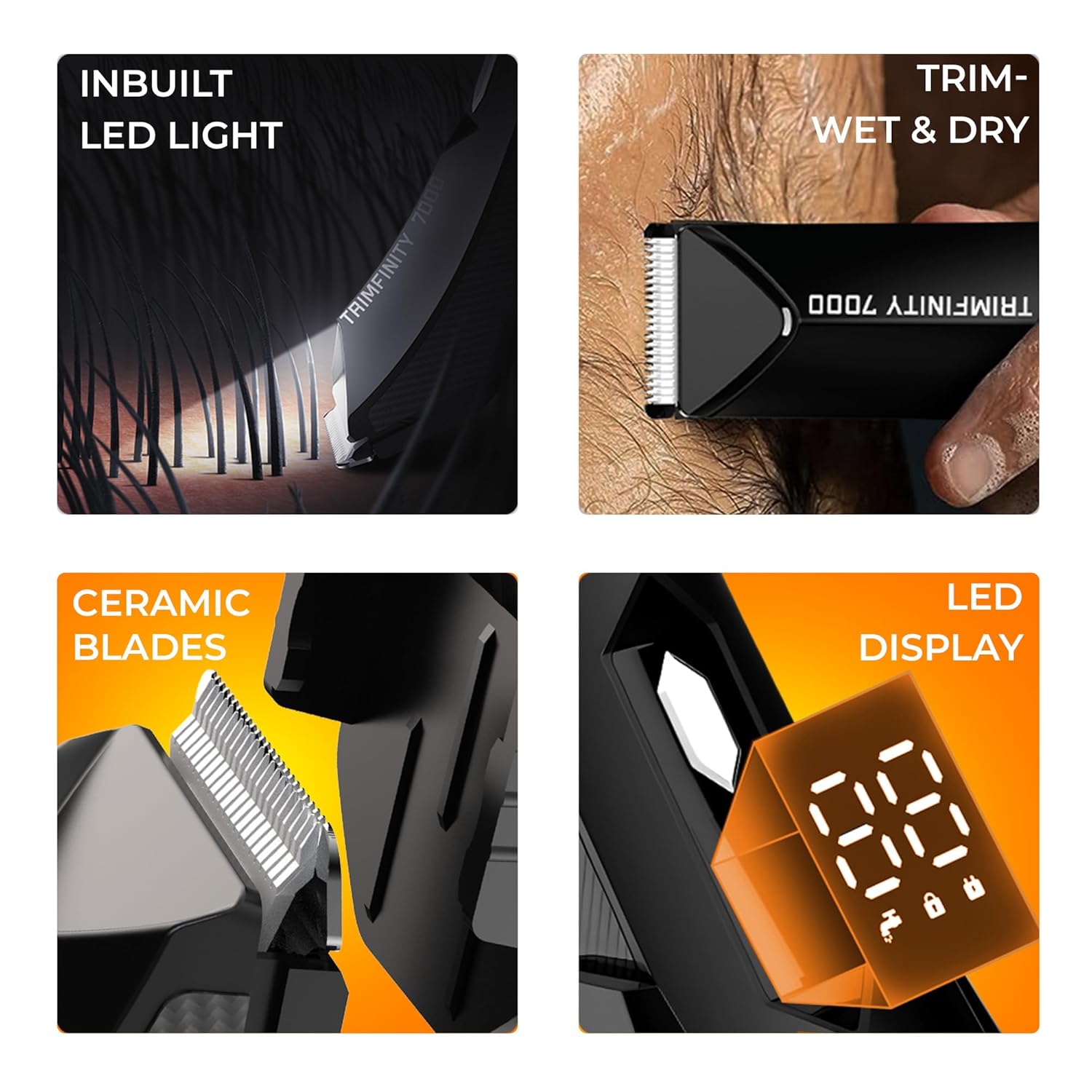 Waterproof Design IPX7 Rating: trimfinity 7000 body & ball trimmer is designed waterproof so that now you can shave even in the shower.
