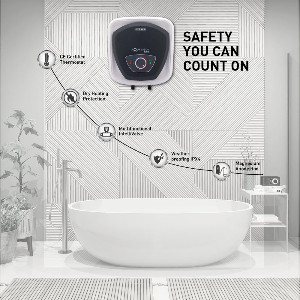 USHA AquaBuddy Neo Geyser 15 Litre 5 Star BEE Rating | Copper Heating Element | Storage Water Heater with Anti-Rust Protection | Warranty: 8 Yr Tank, 2 Yr Product